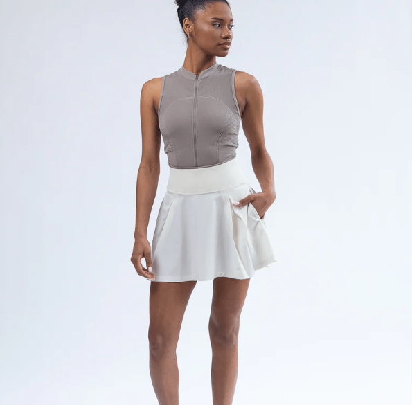This Remy skort with the playsuit is a must-have club or gym outfit. It’s comfortable, seamless, and flexible with an extended front zipper and pockets. The skort is designed to go with the playsuit and has a compression waistband and exterior pocket. Perfect for the pickleball player on your list.