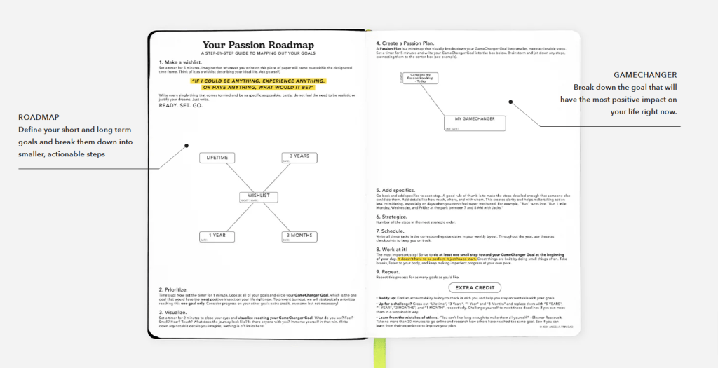 Your Passion Roadmap is where you map out all your goals for the following year, and then break those goals down into actionable steps.