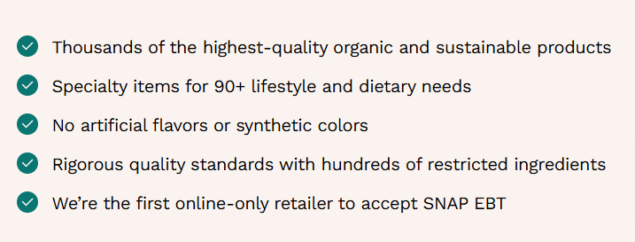 I ordered groceries from Thrive Market for two weeks. Thrive Market is an online grocer claiming to be different than other big box stores. Here’s a screenshot from its website: